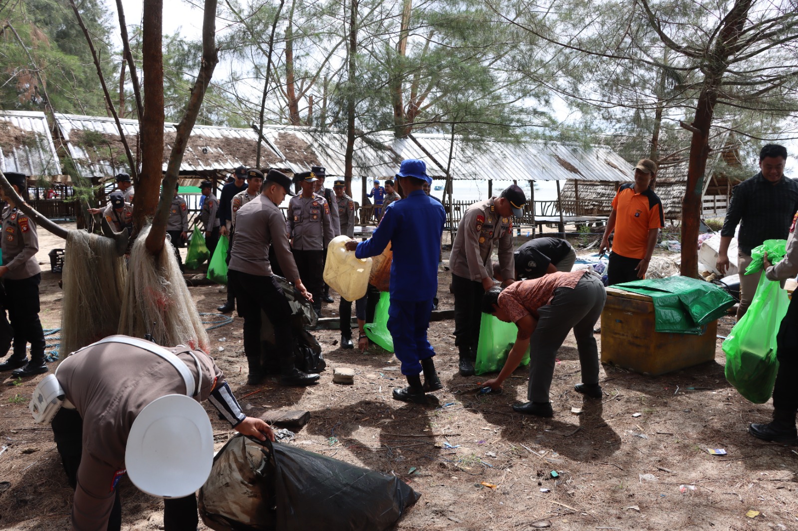 Personel Polres Sukamara Laksanakan Kurve Gerakan Indonesia Asri Aman–Sehat–Resik–Indah di Pantai Saung Sederhana
