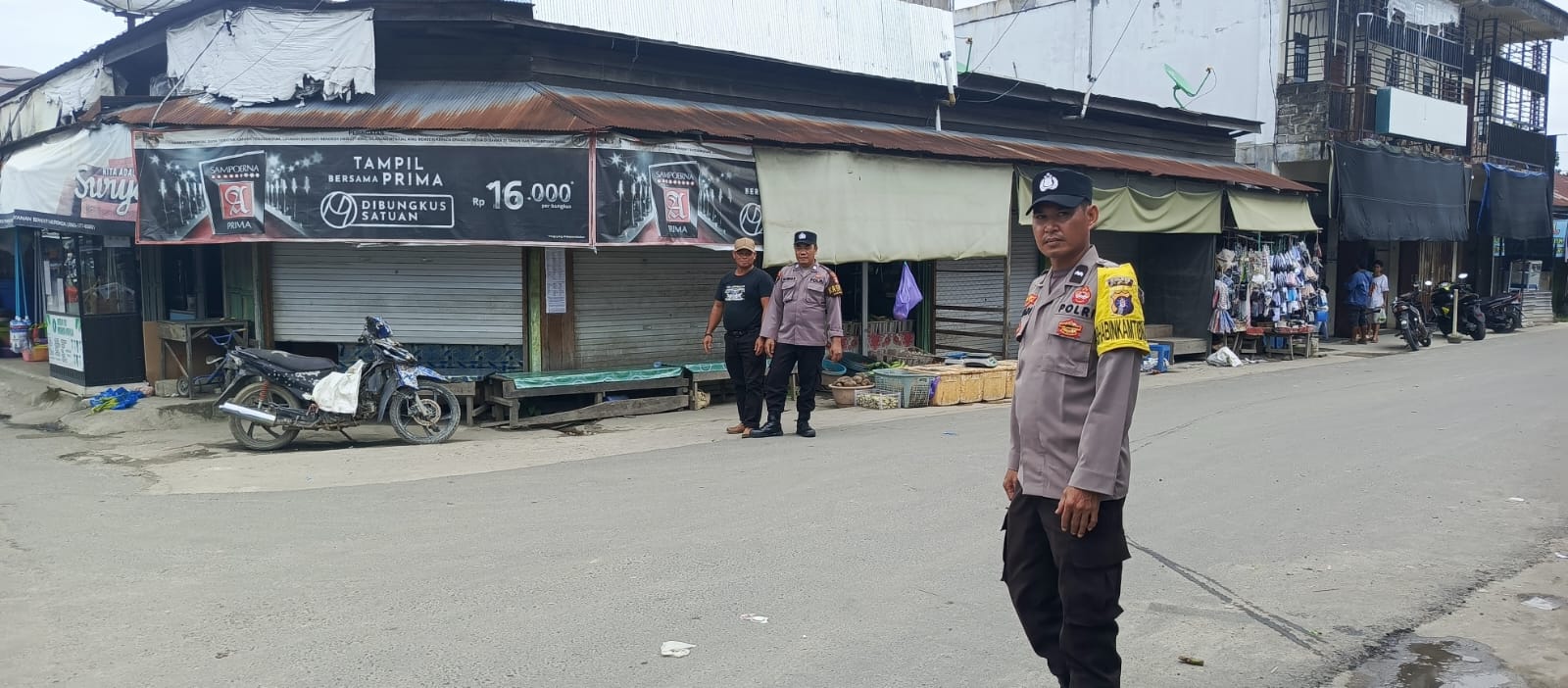 Giat Personil polsek kapuas tengah lakuakan rutin Patroli ke pasar harian Pujon desa Pujon.