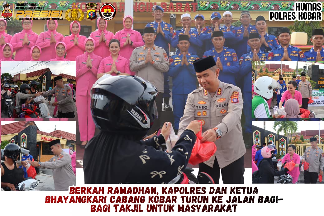 Kegiatan yang berlangsung menjelang waktu berbuka puasa ini dipimpin langsung oleh Kapolres Kobar AKBP Theodorus Priyo Santosa, S.I.K., didampingi Ketua Bhayangkari Cabang Kobar, Ny. Scila Theo.