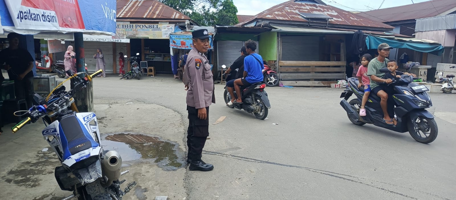 Giat Personil polsek kapuas tengah lakuakan rutin Patroli ke pasar harian Pujon desa Pujon.
