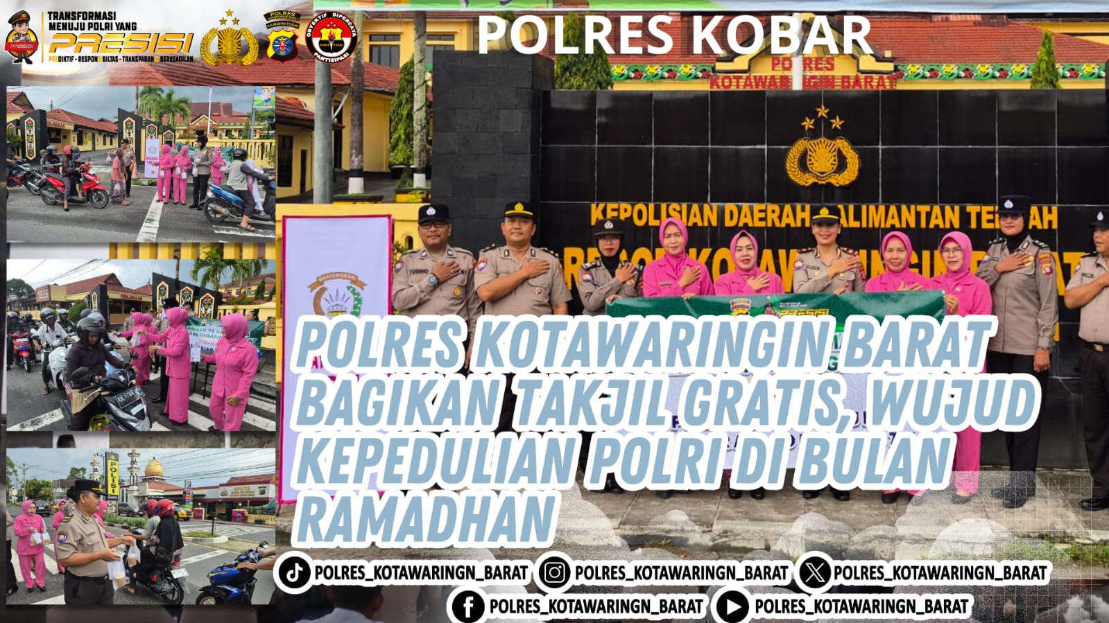 Polres Kobar – Polres Kobar kembali menunjukkan kepedulian terhadap masyarakat dengan membagikan takjil gratis kepada pengguna jalan di depan Mako Polres Kotawaringin Barat, Rabu (25/2/2026). Kegiatan ini dipimpin oleh Kasat Binmas Polres Kotawaringin Barat, IPTU Paulina Widyastuti, S.E., M.H., bersama Bhayangkari