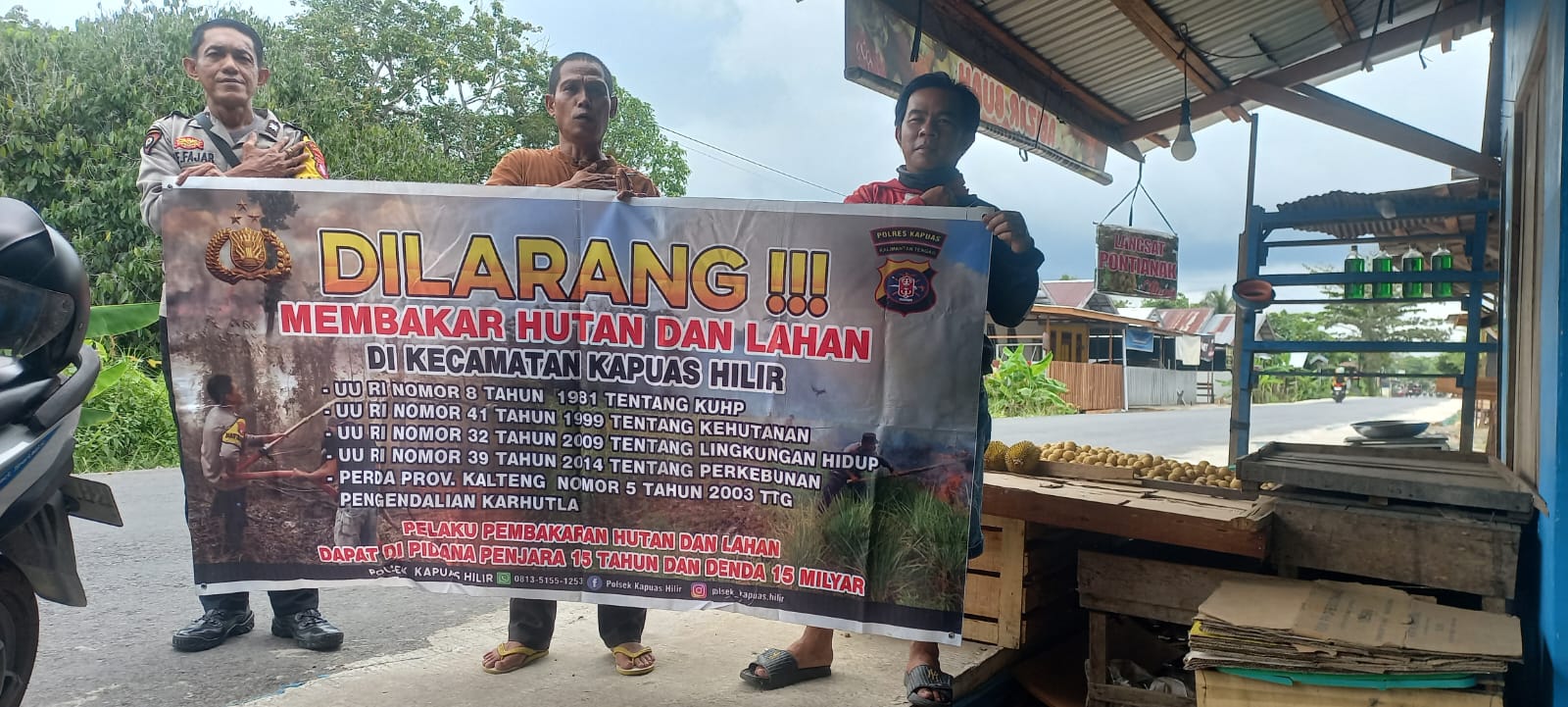 Polsek Kapuas Hilir_Polres Kapuas Jajaran Polda Kalteng terus berupaya mencegah terjadinya kebakaran hutan dan lahan dengan rutin menyampaikan Himbauan Kamtibmas serta mengimbau kepada seluruh warganya untuk tidak membakar hutan dan lahan, baik pada saat musim kemarau ataupun musim penghujan di wilayah hukum Polsek Kapuas Hilir Kec.Kapuas Hilir Kab.Kapuas Prov.Kalimantan Tengah.Rabu (25/02/2026)