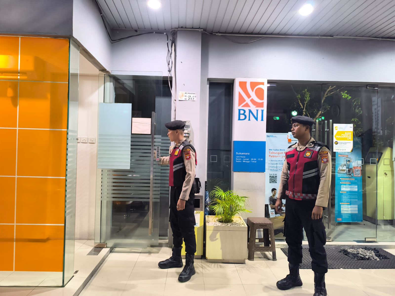 Patroli malam ini dilakukan sebagai langkah preventif guna mengantisipasi potensi gangguan kamtibmas, khususnya tindak kriminalitas di sekitar objek vital perbankan pada malam hari. Personel Sabhara melakukan pemantauan di area dalam dan sekitar kantor bank, termasuk mesin ATM, area parkir, serta akses keluar masuk guna memastikan situasi tetap aman dan kondusif.