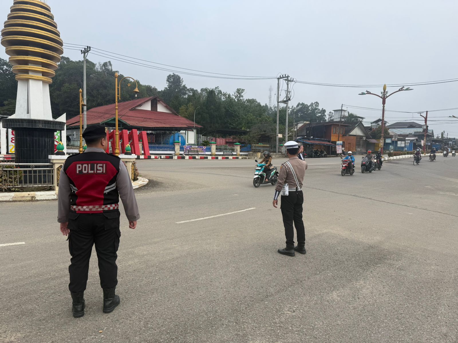 Selain pengaturan lalu lintas, personel juga memberikan edukasi langsung kepada pengguna jalan tentang pentingnya menggunakan helm, tidak menggunakan ponsel saat berkendara, serta menjaga etika berlalu lintas.