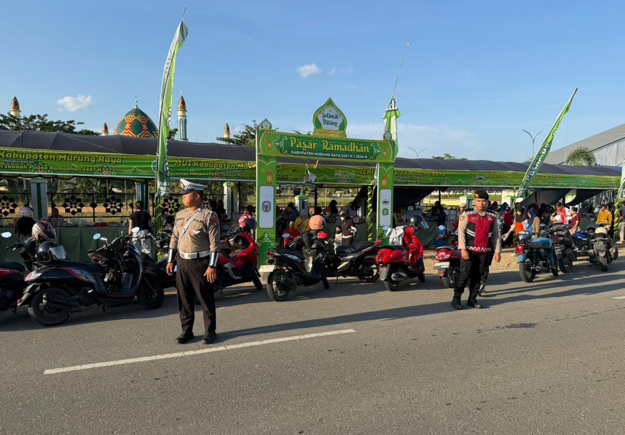 Puruk Cahu – Demi menjaga keamanan dan kenyamanan masyarakat selama bulan suci Ramadhan, Tim Patroli Polres Murung Raya (Mura) Polda Kalteng, melaksanakan patroli di Pasar Ramadhan yang berlokasi didepan Masjid Al Istiqlal Jl. Jenderal Sudirman Puruk Cahu, Kec. Murung, Kab. Murung Raya, Jumat (27/2/2026) sore.