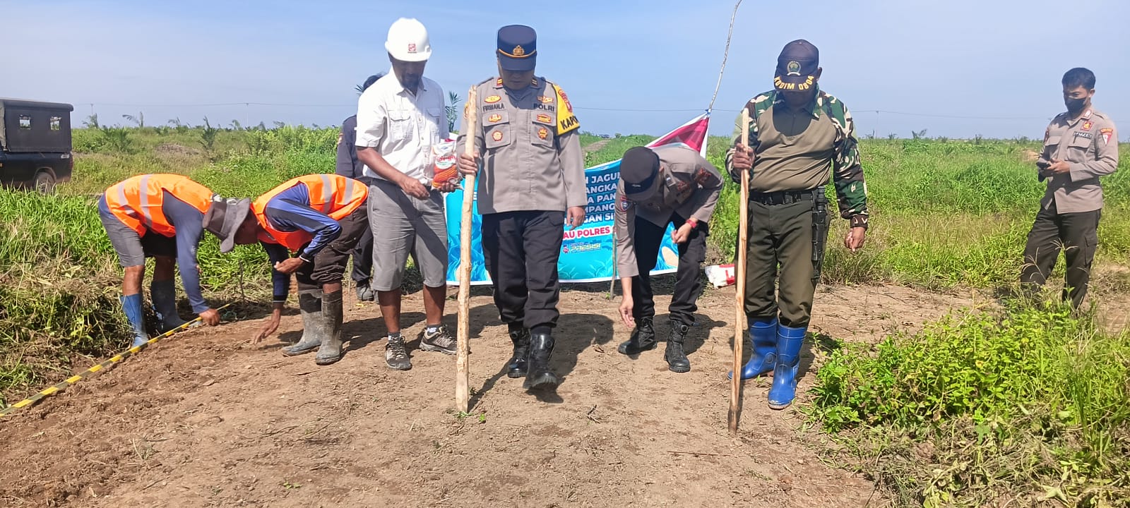 Kegiatan yang dimulai pukul 08.00 WIB ini merupakan langkah konkret Polri dalam mengoptimalkan pemanfaatan lahan produktif guna memperkuat stok pangan daerah. Bertempat di Blok L9, Iptu Firman Amir didampingi Polisi Penggerak Desa Derangga, Aipda Rio Bayu P.S., bersama manajemen perusahaan dan belasan karyawan terjun langsung ke lahan untuk menanam benih.