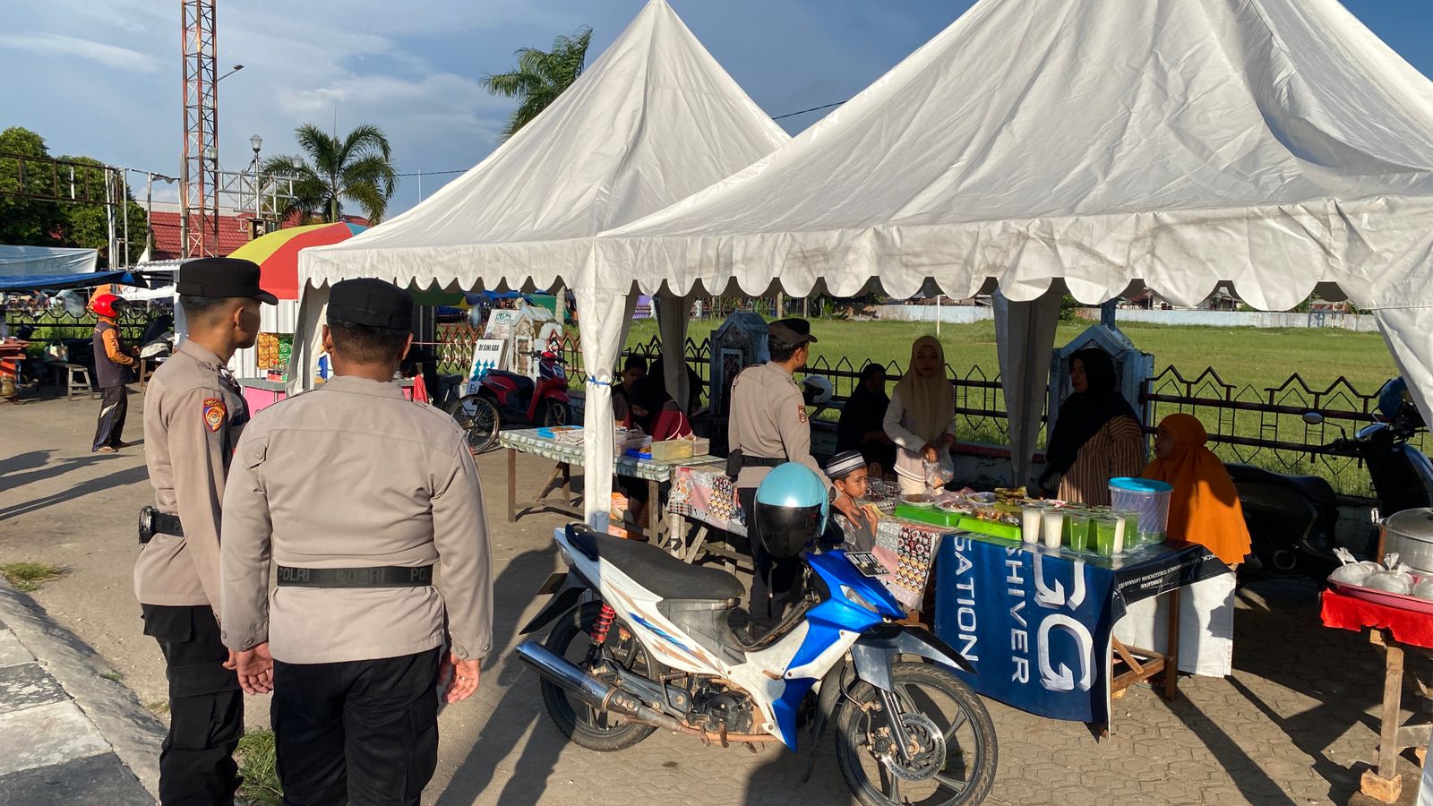 Kegiatan pengamanan yang dimulai sejak pukul 15.30 WIB ini dipimpin langsung oleh Katim Regu I, AIPDA Kahfi, bersama dengan seluruh personel Regu I yang bertugas. Kehadiran personel kepolisian di lokasi pasar ramadhan bertujuan untuk menciptakan situasi yang aman dan nyaman bagi para pedagang maupun pengunjung yang berbelanja kebutuhan berbuka puasa.