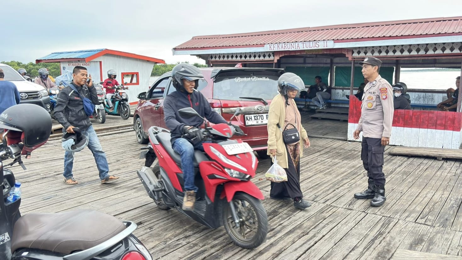 Pastikan Penyeberangan Aman, Polsek Kapuas Barat Intensifkan Patroli Harkamtibmas di Feri Mandomai