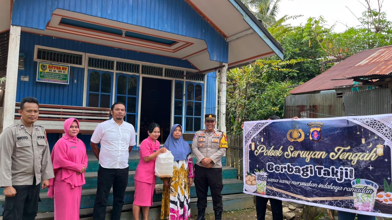 Polres Seruyan, 05 Maret 2026 – Dalam rangka menyemarakkan bulan suci Ramadhan 1447 Hijriah dan mempererat tali silaturahmi dengan masyarakat, jajaran Polsek Seruyan Tengah Polres Seruyan melaksanakan kegiatan pembagian takjil kepada warga di Kelurahan Rantau Pulut, Kecamatan Seruyan Tengah, Kabupaten Seruyan, Provinsi Kalimantan Tengah.