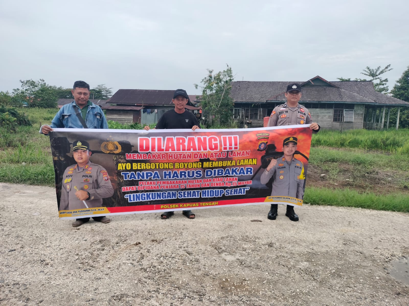 Tribratanews.kalteng.polri.go.id – Polsek Kapuas tengah jajaran Polres Kapuas Polda Kalteng,Jum’at(06/03/2026) , Polsek Kapuas Tengah jajaran Polres Kapuas Provinsi Kalimanatan Tengah telah melaksanakan Kegiatan Sosialisasi Larangan Karhutla dengan spanduk dan Maklumat Kapolda Kalteng tentang Sangsi dan Pidana buka lahan dengan cara membakar, sesuai dengan Pasal 187,188 KUHP, Pasal 78 UU No. 14 Th. 1999, Pasal 108 UU No. 39 Th. 2014, dan Pasal 25 Perda Kalteng No. 5 Th. 2003 Dengan ancaman Pidana 15 Tahun dan denda 15 Milyar.