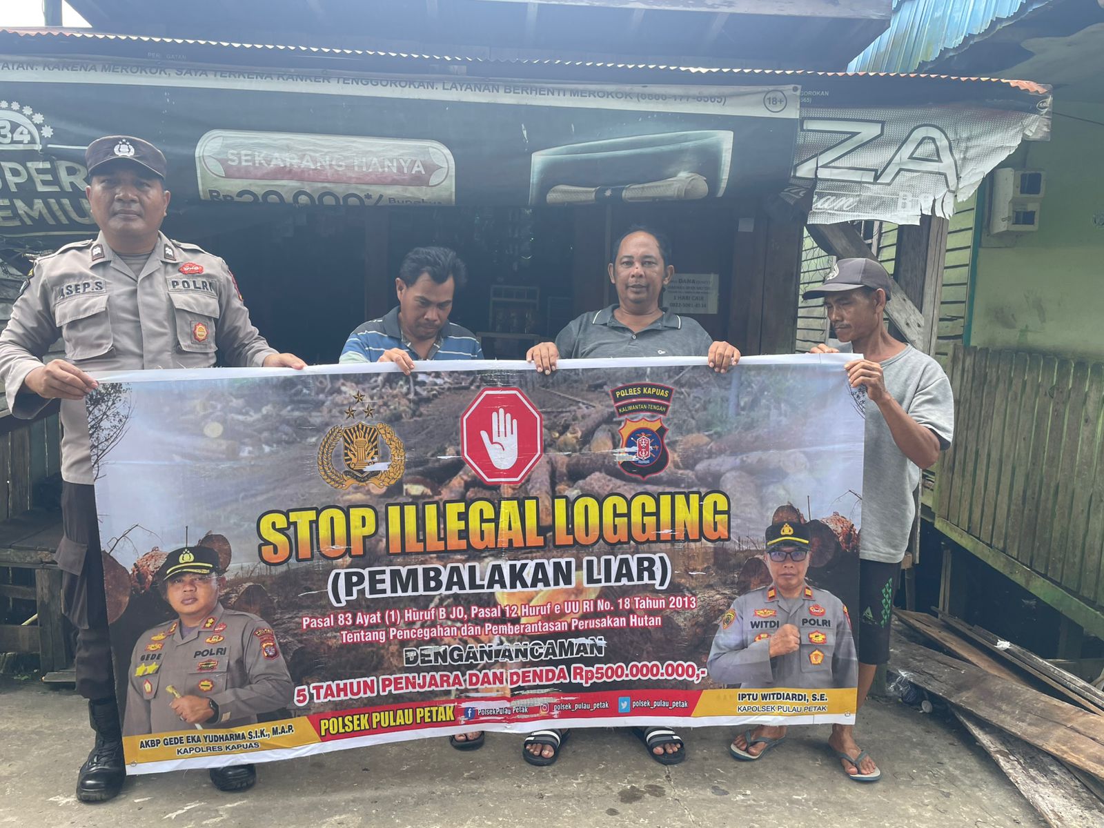 Kapolsek Pulau Petak  Iptu Witdiardi, S.E.,mengatakan untuk kegiatan hari ini dilaksanakan himbauan kepada Masyarakat Dalam Rangka pencegahan terjadinya pembalakan liar beserta penyampaian pasal, sanksi kurungan dan denda yang menjerat pelaku ilegal loging dan dengan menggunakan spanduk stop stop ilegal loging.