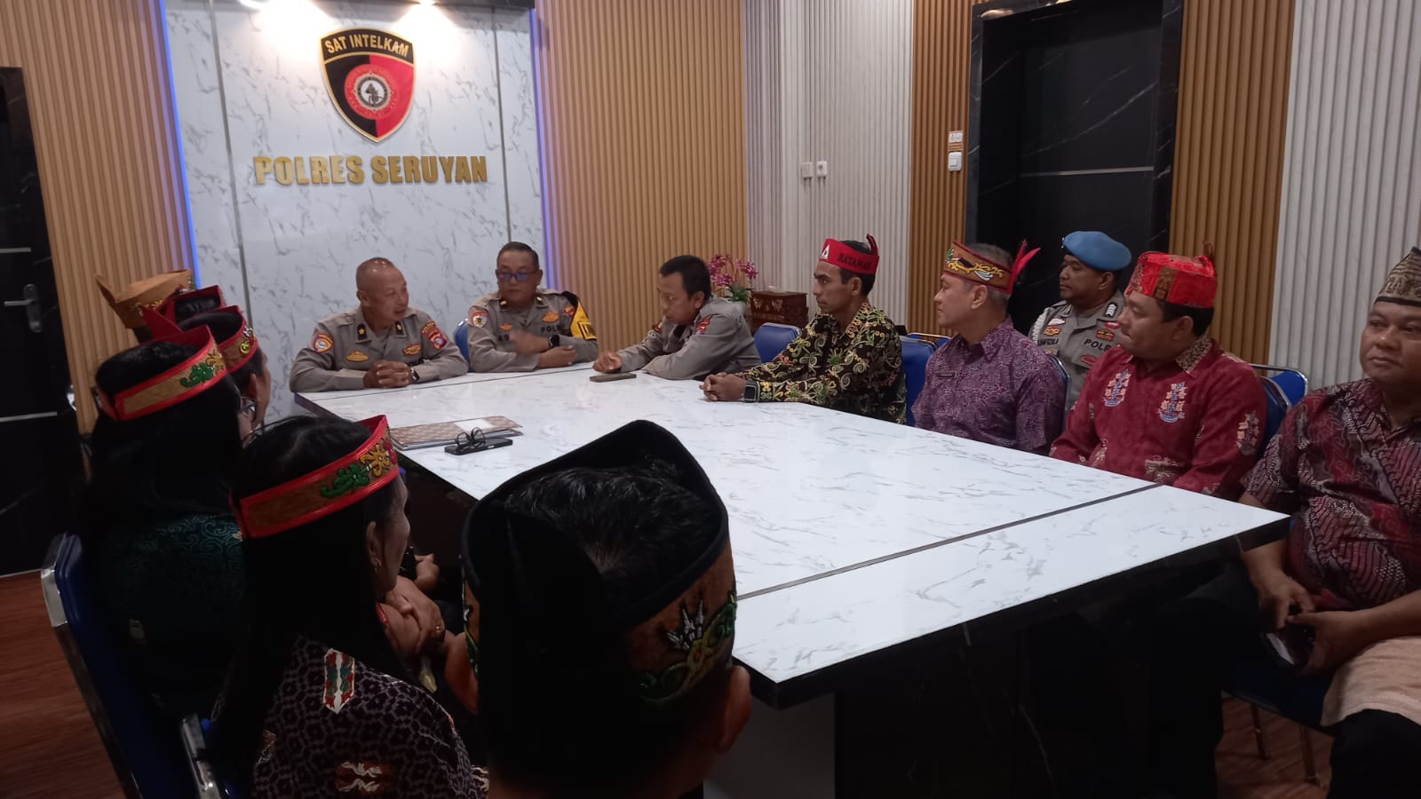 Polres Seruyan, 13 Maret 2026 – Polres Seruyan menggelar kegiatan “Seruyan Dengar Aspirasi dan Aduan Masyarakat Bersama Kapolres Seruyan” yang menghadirkan pengurus Dewan Adat Dayak (DAD) dan Barisan Pertahanan Masyarakat Adat Dayak (Batamad) Kabupaten Seruyan, Jumat (13/3) di Ruang Rapat Satintelkam Polres Seruyan.