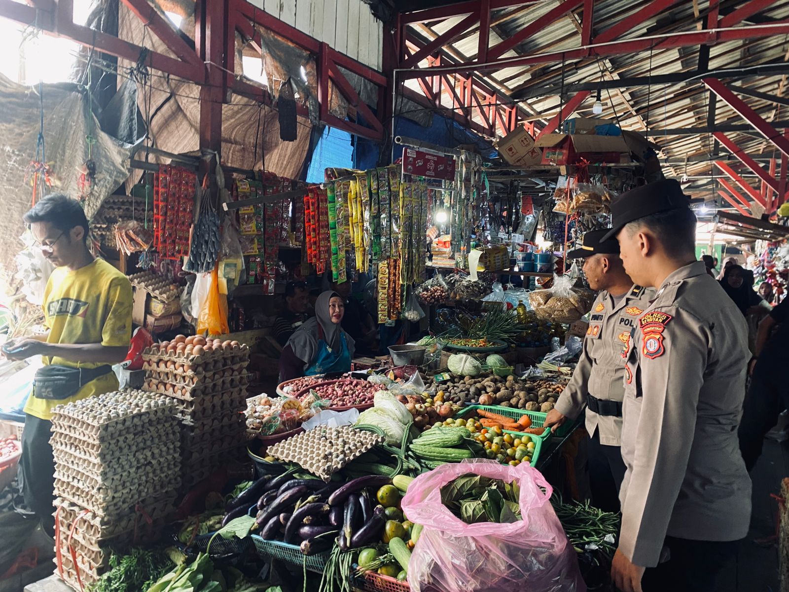 Dipimpin langsung IPDA Aprianto, personel tak hanya berkeliling memastikan keamanan pasar, tetapi juga berdialog hangat dengan para pedagang dan pengunjung. Sambil bersenda gurau, mereka menyelipkan pesan-pesan kamtibmas dan mengajak warga memanfaatkan Call Center 110 jika membutuhkan bantuan polisi.