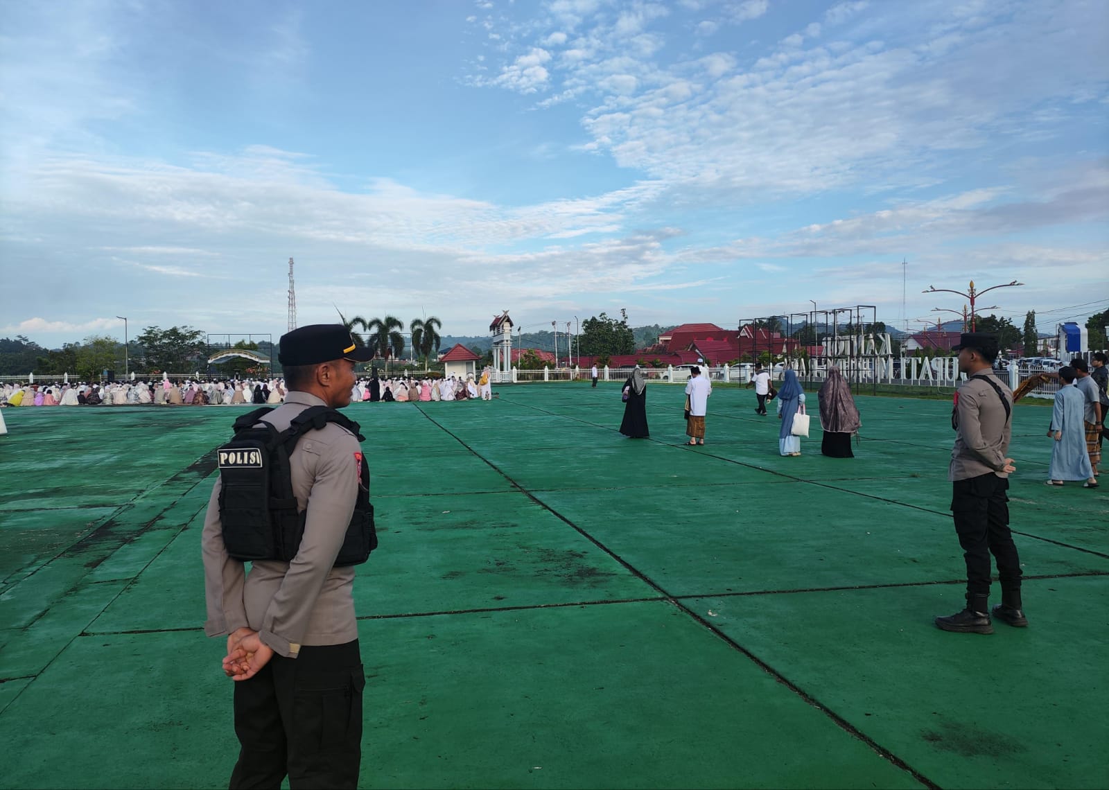 Pengamanan ini bertujuan untuk memastikan keselamatan serta ketertiban masyarakat dalam menjalankan ibadah sholat Idul Fitri.