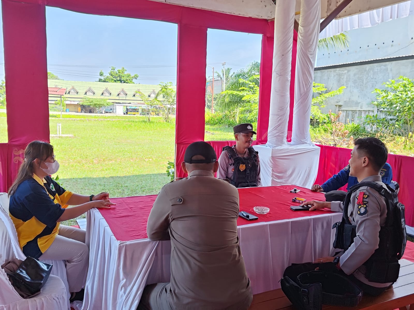 Personel yang tergabung dalam Regu III Pos Pengamanan Simpang Hanau terdiri dari 3 personel Polri, 1 personel Satpol PP, 1 personel Damkar, dan 1 tenaga kesehatan. Pos Pengamanan ini merupakan salah satu pos strategis yang disiagakan untuk mengamankan arus balik Lebaran 1447 H di wilayah Kecamatan Hanau.