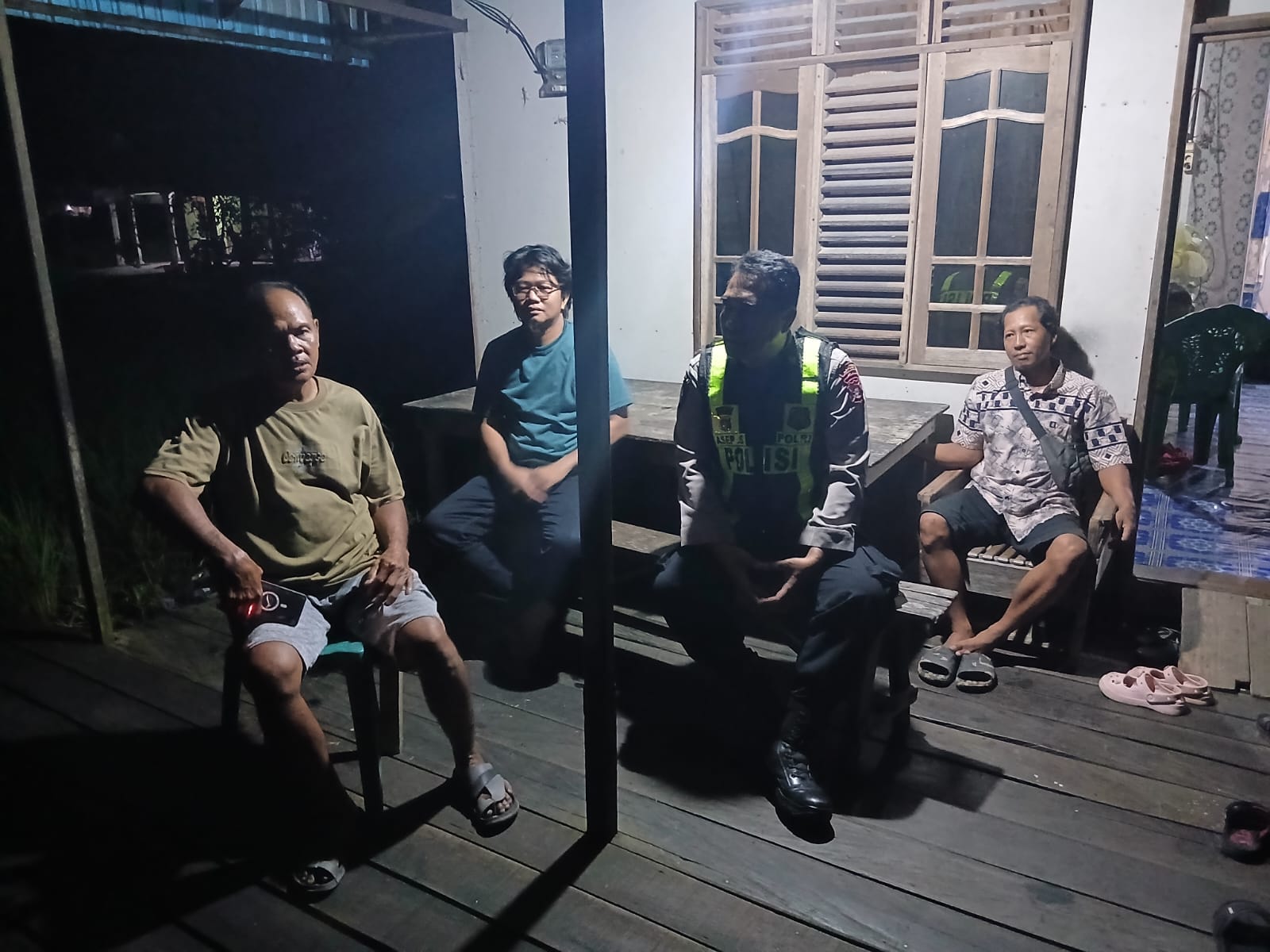 Terlihat saat patroli malam, anggota piket Polsek Pulau Petak melakukan patroli di warung warung kecil dan pemukiman penduduk Kecamatan Pulau Petak, Selasa (24/03/2026) Malam