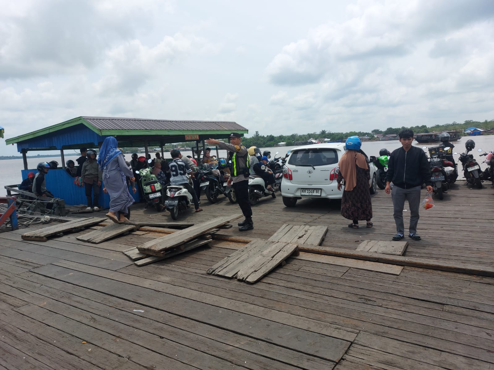 Ciptakan Keamanan, Polsek Kapuas Barat Laksanakan Patroli dan Pengaturan Arus Lalin di Pelabuhan Ferry Penyeberangan