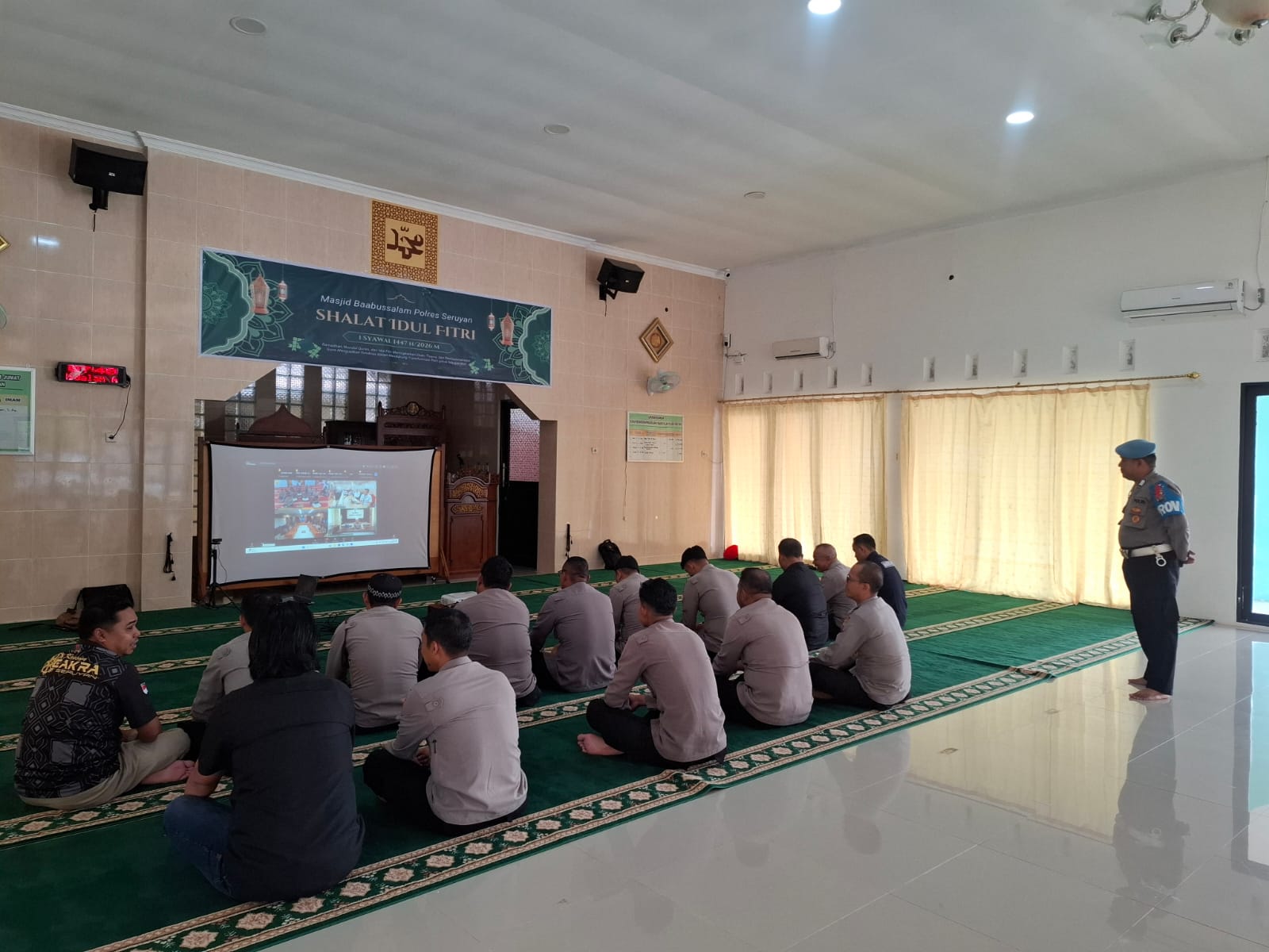Polres Seruyan, 26 Maret 2026 – Personel Polres Seruyan mengikuti kegiatan Pembinaan Rohani Agama Islam dan Pembinaan Rohani Umat Kristiani yang dilaksanakan secara rutin melalui Zoom Meeting, Kamis (26/3/2026) pagi. Kegiatan yang berlangsung mulai pukul 07.00 WIB ini dipusatkan di Masjid Baabussalam Polres Seruyan untuk peserta Muslim dan di Aula Data Polres Seruyan untuk peserta Kristen.