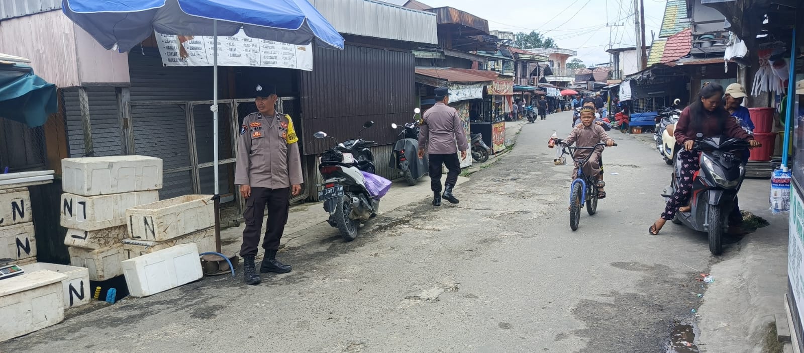 Personil polsek kapuas tengah lakuakan rutin Patroli ke paaasar harian Pujon desa Pujon.