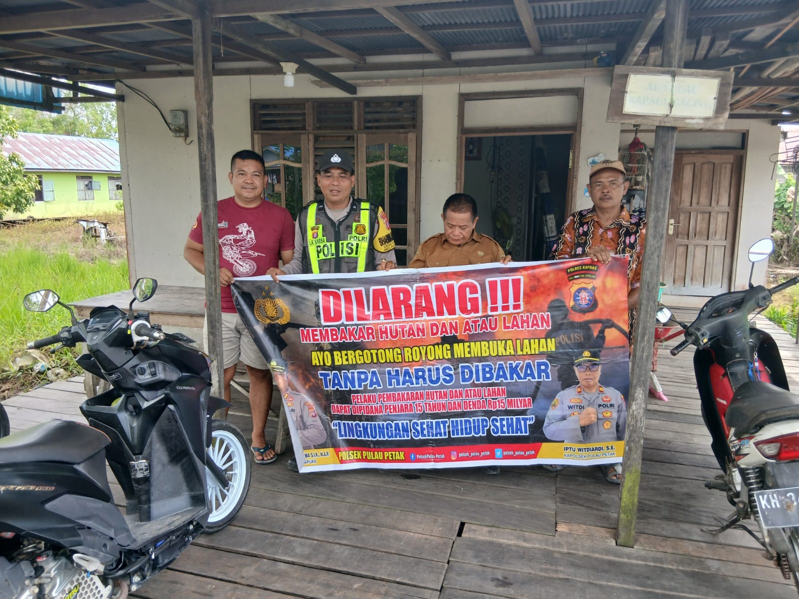 “Mari kita wujudkan Kecamatan Pulau Petak bebas dari kebakaran hutan dan lahan, udara bersih dan lingkungan asri,” ujar Kapolsek.