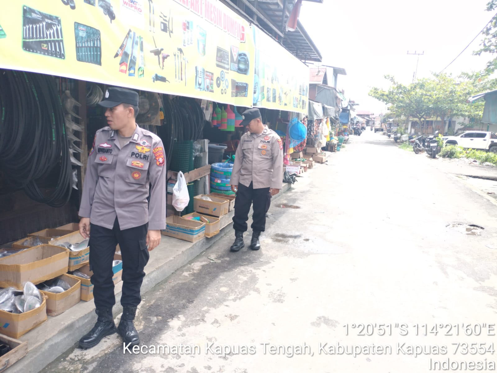 Personil polsek kapuas tengah lakuakan rutin Patroli ke pasar harian Pujon desa Pujon.