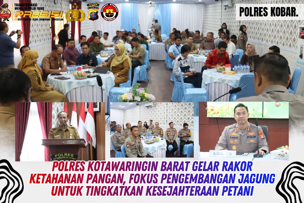 Polres Kobar – Polres Kotawaringin Barat menggelar Rakor Ketahanan Pangan bersama instansi terkait di Aula Satya Haprabu, Selasa (31/3/2026) siang. Kegiatan ini fokus pada pengembangan jagung sebagai upaya meningkatkan ketahanan pangan nasional dan kesejahteraan petani di Kabupaten Kotawaringin Barat.