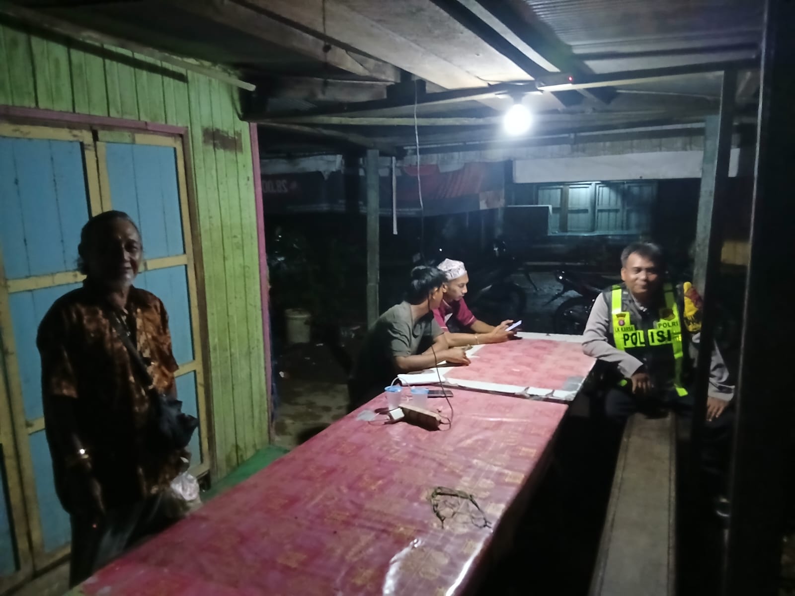Terlihat saat patroli malam, anggota piket Polsek Pulau Petak melakukan patroli di warung warung kecil dan pemukiman penduduk Kecamatan Pulau Petak, Kamis (02/04/2026) Malam