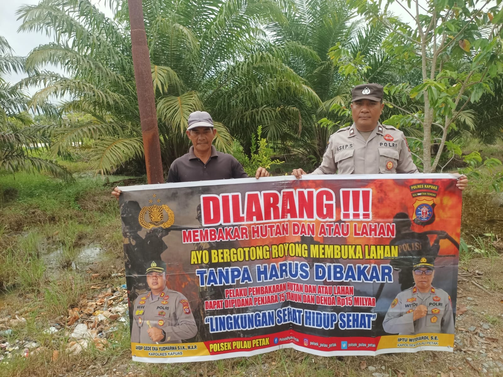 “Mari kita wujudkan Kecamatan Pulau Petak bebas dari kebakaran hutan dan lahan, udara bersih dan lingkungan asri,” ujar Kapolsek.