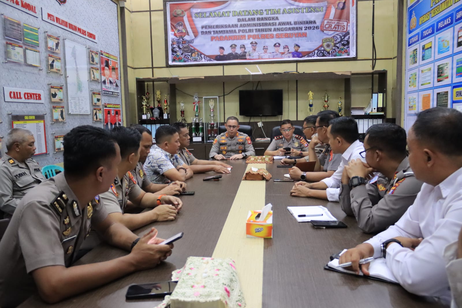 Polres Seruyan, 6 April 2026 – Kapolres Seruyan AKBP BEDDY SUWENDI, S.H., S.I.K. memimpin rapat bersama Pejabat Utama (PJU) dan pengurus Bhayangkari Polres Seruyan di Aula Data Polres Seruyan, Senin (6/4) mulai pukul 08.30 WIB.