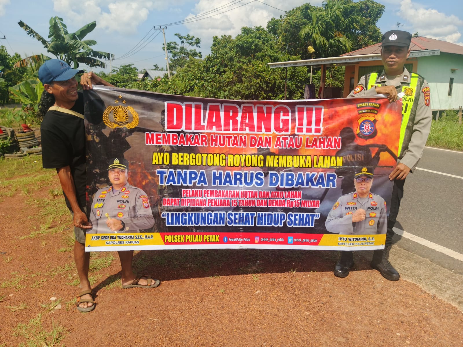 “Mari kita wujudkan Kecamatan Pulau Petak bebas dari kebakaran hutan dan lahan, udara bersih dan lingkungan asri,” ujar Kapolsek.