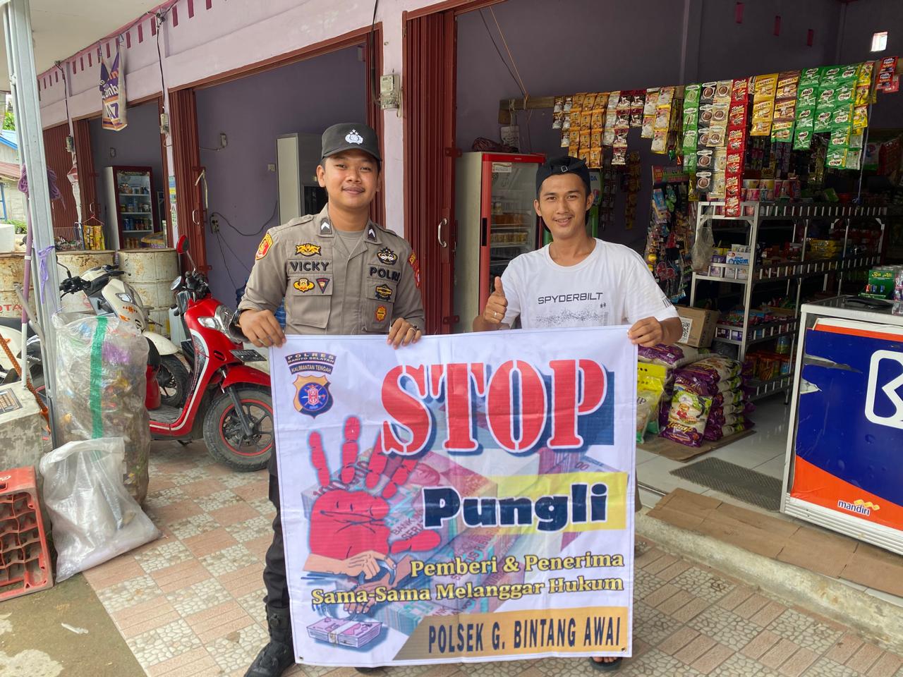 Polres Barsel – Personel Polsek Gunung Bintang Awai (GBA), Polres Barsel, Polda Kalteng, saat mensosialisasikan Peraturan Presiden nomor 87 tahun 2016 tentang Satuan Tugas Sapu Bersih Pungutan Liar atau Satgas Saber Pungli, Kec. GBA, Kab. Barsel, Prov. Kalteng, Jumat (10/4/2026) pagi.