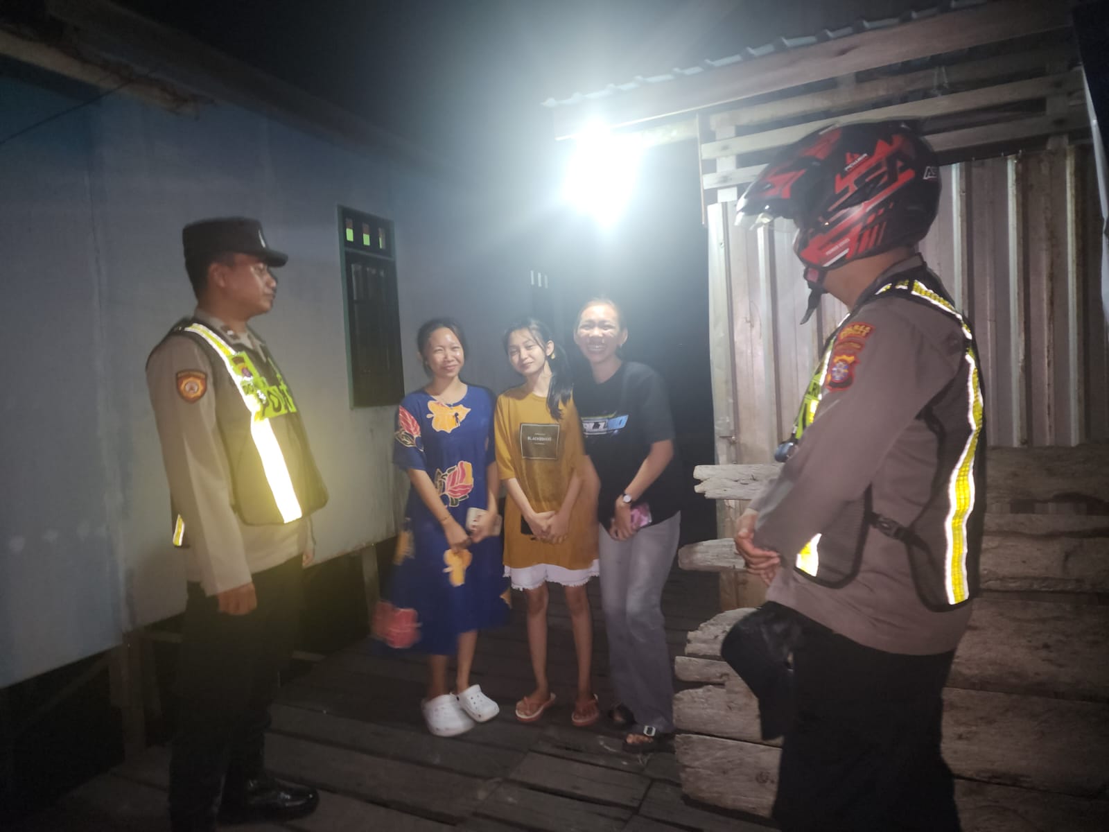 Terlihat saat patroli malam, anggota piket Polsek Pulau Petak melakukan patroli di warung warung kecil dan pemukiman penduduk Kecamatan Pulau Petak, Jumat (10/04/2026) Malam
