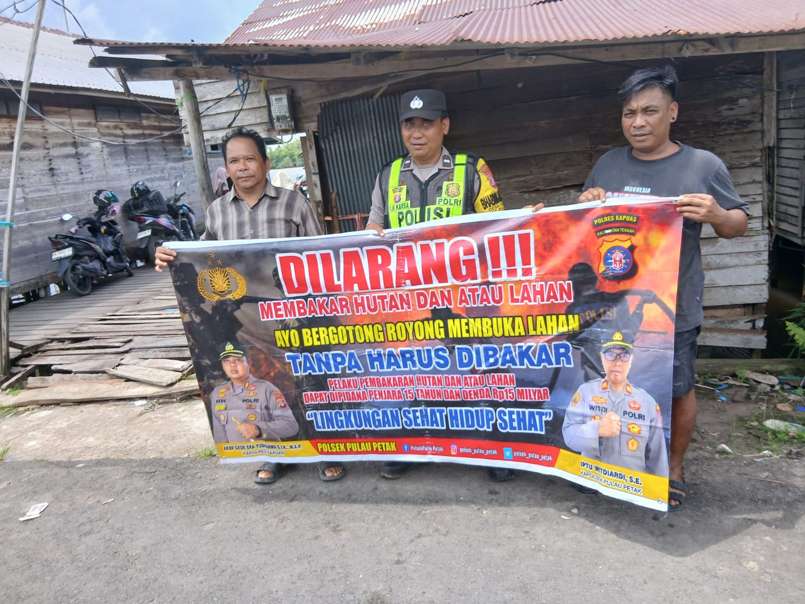 “Mari kita wujudkan Kecamatan Pulau Petak bebas dari kebakaran hutan dan lahan, udara bersih dan lingkungan asri,” ujar Kapolsek.