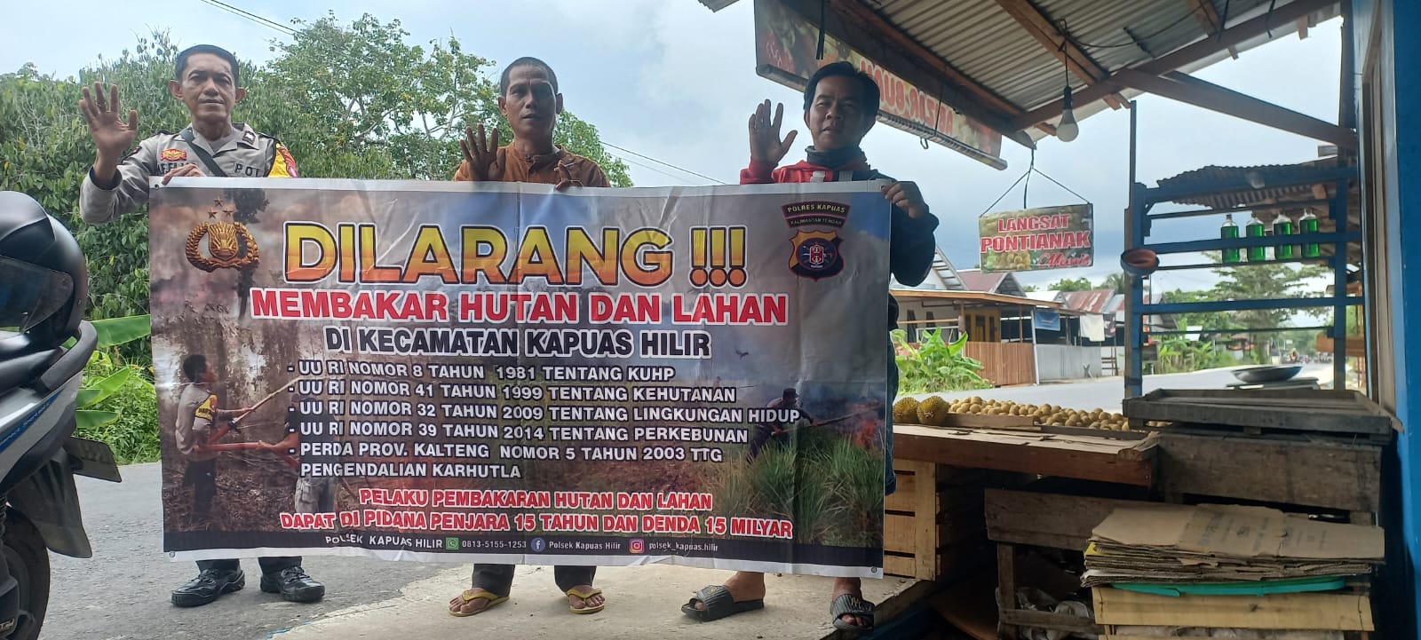 Polsek Kapuas Hilir_Polres Kapuas Jajaran Polda Kalteng terus berupaya mencegah terjadinya kebakaran hutan dan lahan dengan rutin menyampaikan Himbauan Kamtibmas serta mengimbau kepada seluruh warganya untuk tidak membakar hutan dan lahan, baik pada saat musim kemarau ataupun musim penghujan di wilayah hukum Polsek Kapuas Hilir Kec.Kapuas Hilir Kab.Kapuas Prov.Kalimantan Tengah.Sabtu (11/04/2026)