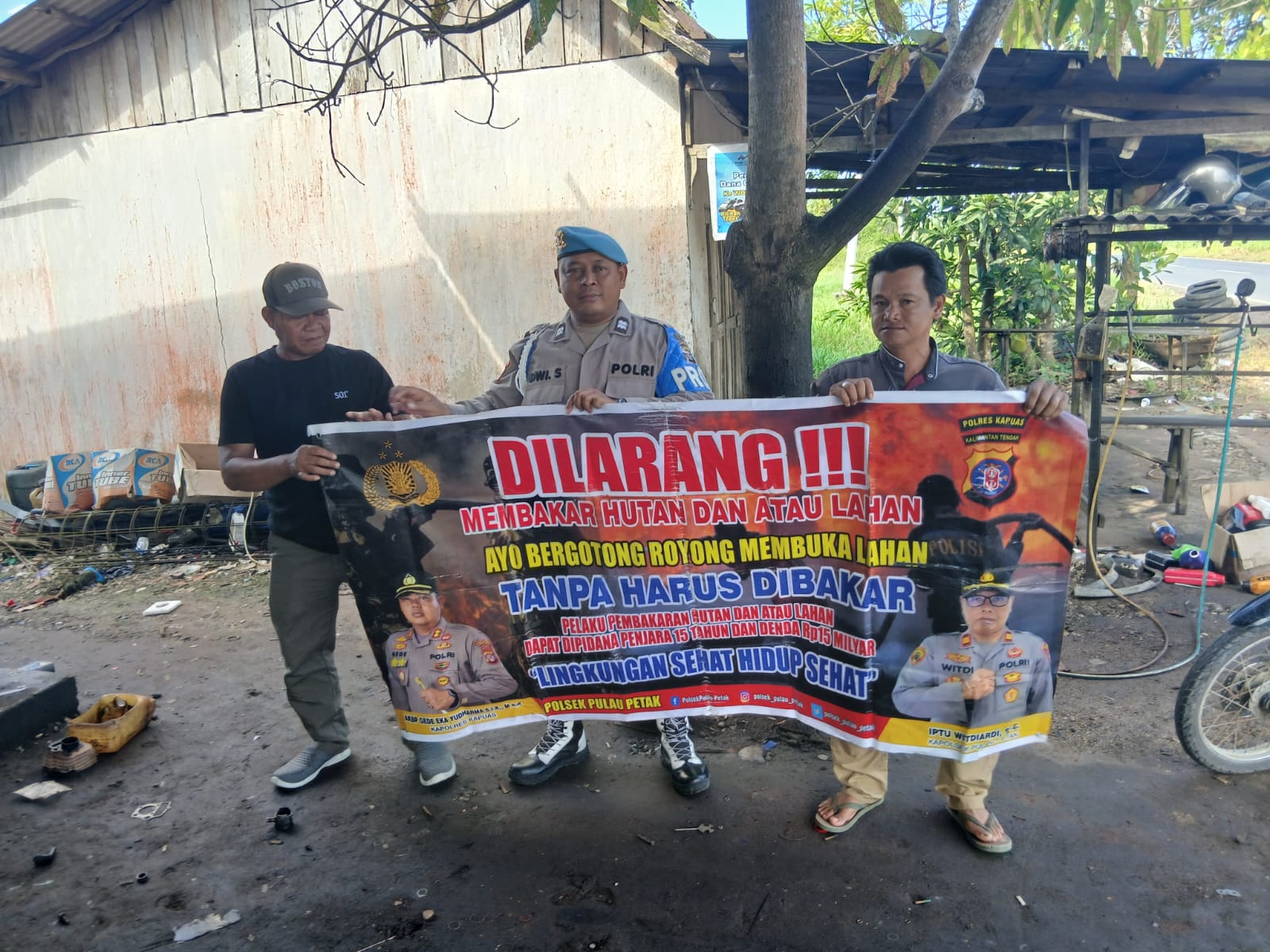 Dalam patroli tersebut personil Polsek Pulau Petak terus mensosialisasikan kepada warga untuk tidak membakar hutan dan lahan pada saat membuka lahan perkebunan serta melakukan kegiatan sosialisasi pencegahan Karhutla, dengan melakukan pembentangan spanduk Karhutla, mengajak masyarakat berperan aktif dalam upaya penanggulangan karhutla.