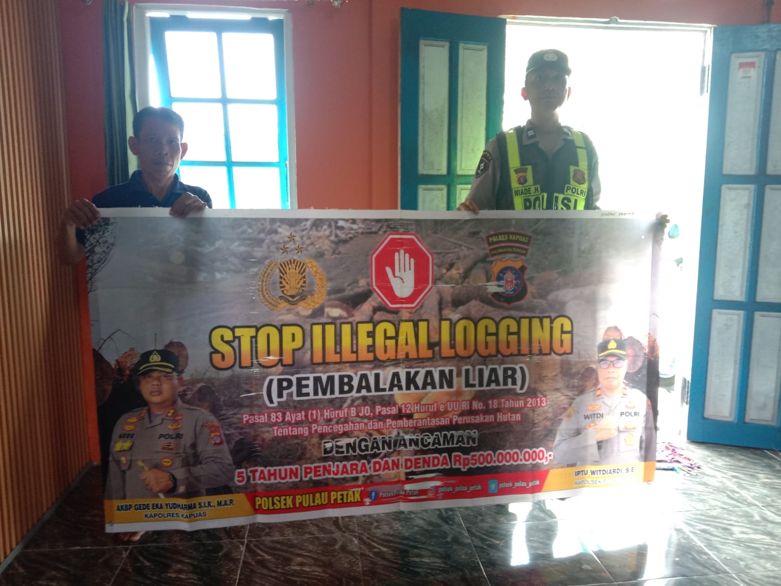 Kapolsek Pulau Petak Iptu Witdiardi, S.E.,mengatakan untuk kegiatan hari ini dilaksanakan himbauan kepada Masyarakat Dalam Rangka pencegahan terjadinya pembalakan liar beserta penyampaian pasal, sanksi kurungan dan denda yang menjerat pelaku ilegal loging dan dengan menggunakan spanduk stop stop ilegal loging.