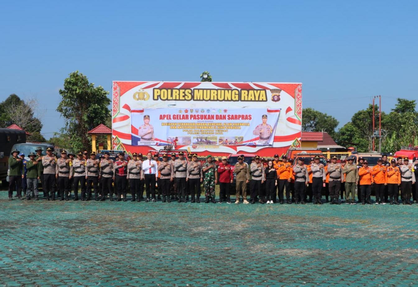 Terkait itu, Polres Murung Raya gelar Apel Pasukan dan Sarpras Kesiapsiagaan Penanggulangan Bencana Alam Karhutla dan Antisipasi Penomena El Nino Godzilla yang dilasanakan halaman apel Mapolres Mura, Jumat (17/4/2026).