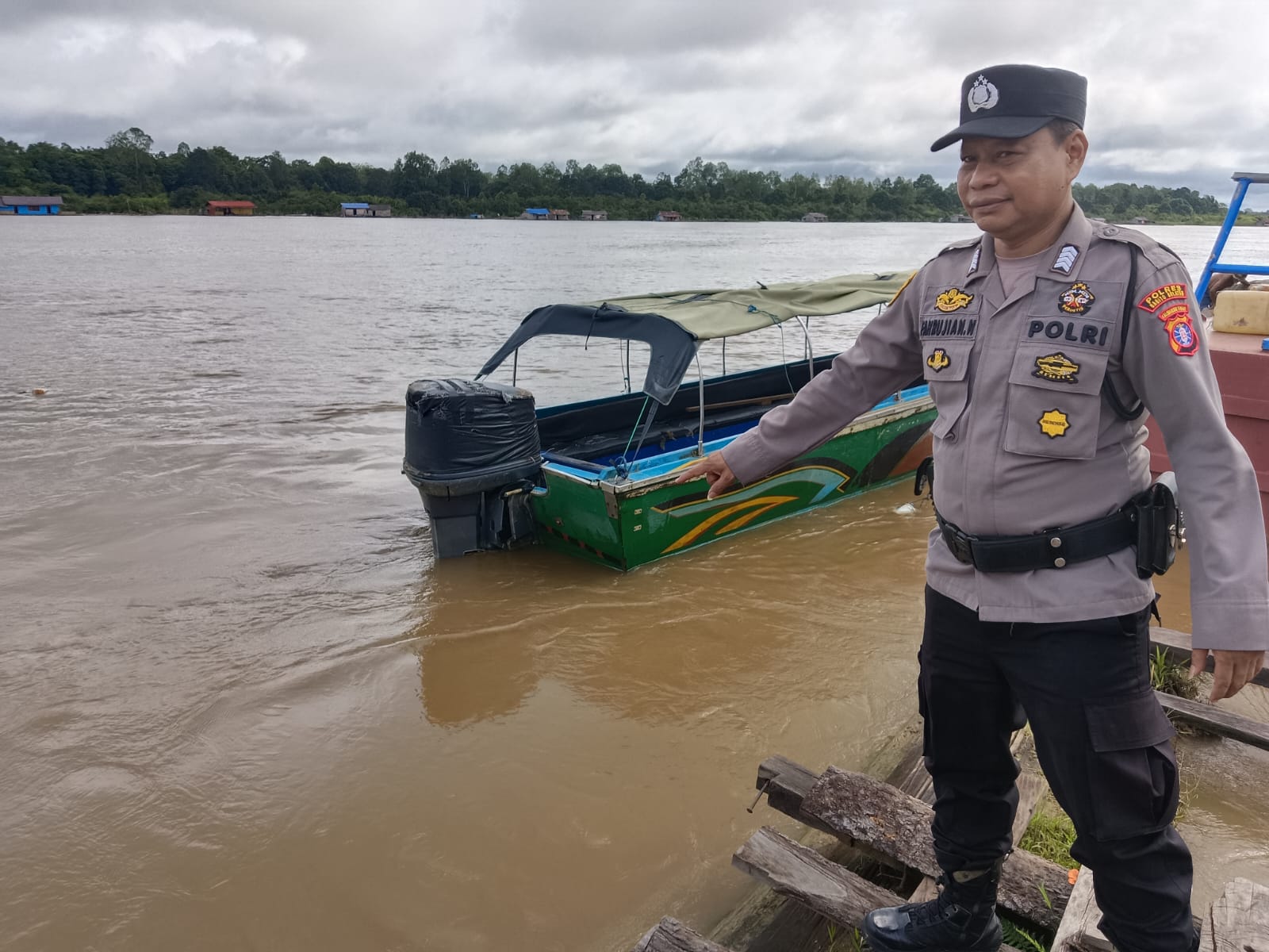 Polres Barsel – Mengantisipasi kenaikan air kiriman dari hulu Sungai Barito, personel Polsek Dusun Selatan (Dusel), Polres Barito Selatan (Barsel), Polda Kalteng, melaksanakan patroli mengecek debit air di bantaran Sungai Barito, Kota Buntok, Sabtu (18/4/2026) Pagi.