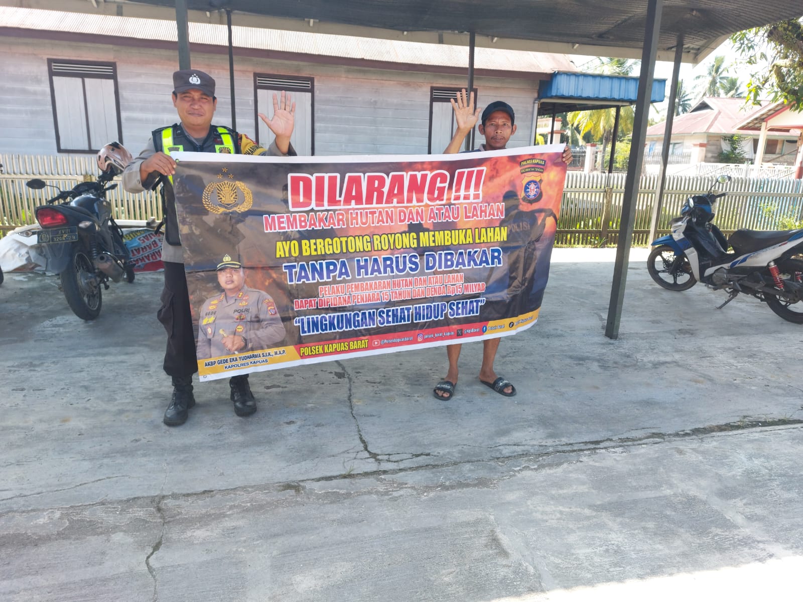 Personil polsek Kapuas Barat gencar terus Melakukan kegiatan sosialisasi pencegahan kebakaran hutan dan lahan (Karhutla), upaya pencegahan menjadi prioritas dalam penanganan karhutla, Salah satunya dengan cara melakukan patroli dialogis dan sosialisasi Karhutla tentang bahayanya membakar hutan dan lahan kepada warga Masyarakat Kecamatan Kapuas Barat.