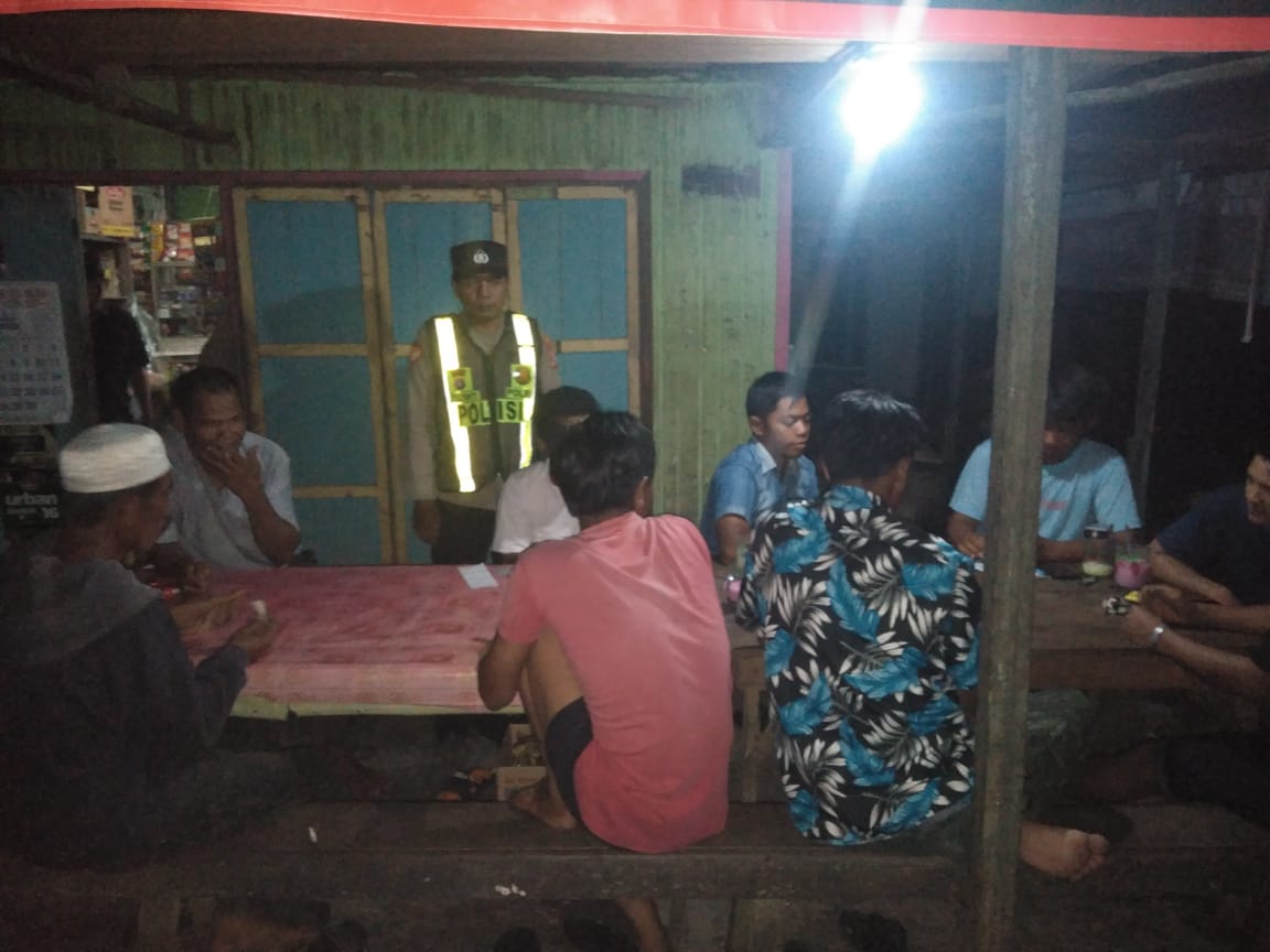 Terlihat saat patroli malam, anggota piket Polsek Pulau Petak melakukan patroli di warung warung kecil dan pemukiman penduduk Kecamatan Pulau Petak, Minggu (19/04/2026) Malam