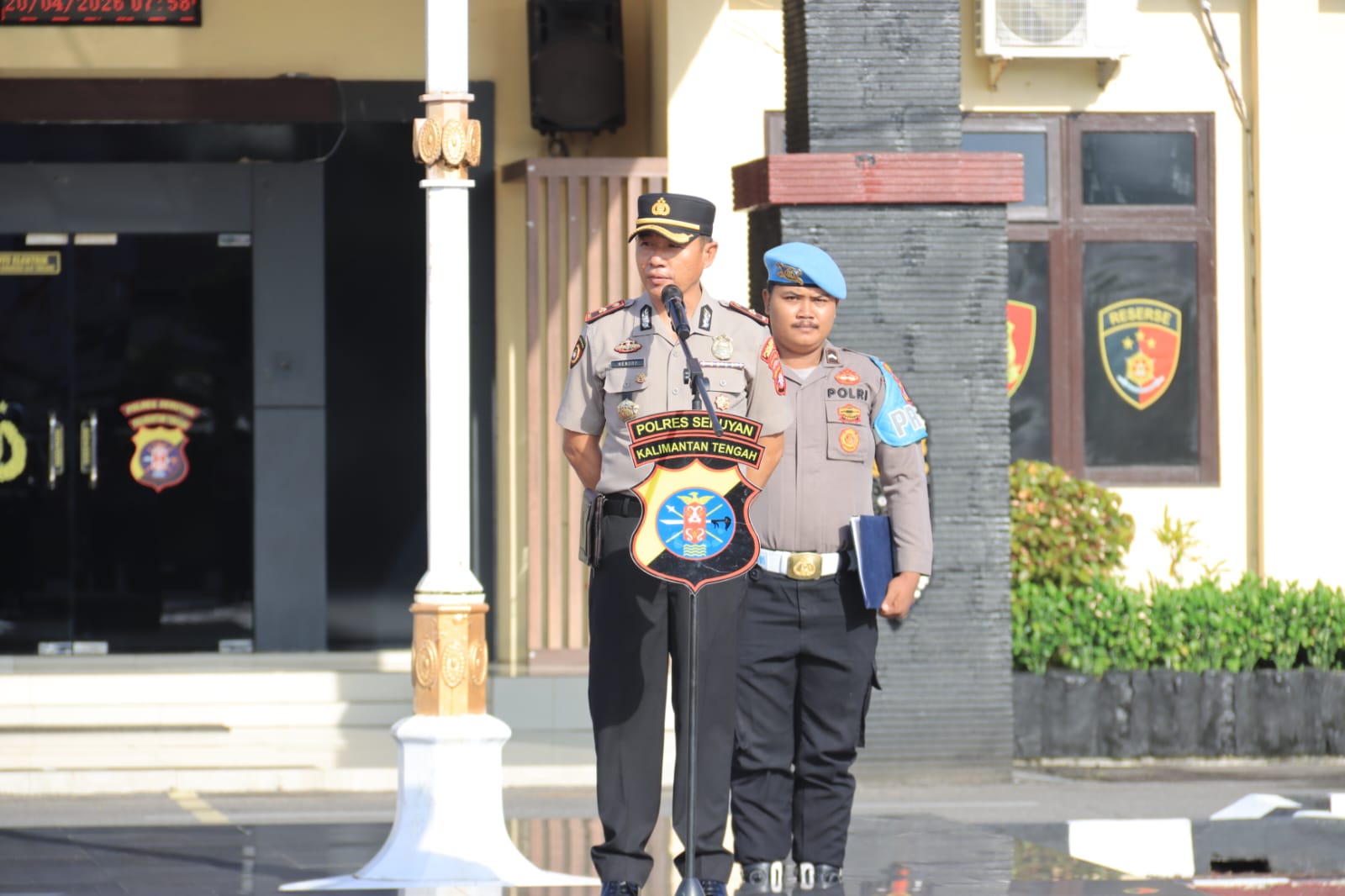 Polres Seruyan, 20 April 2026 – Wakapolres Seruyan Kompol Hendry, S.E. memimpin langsung Apel Pagi Jam Pimpinan di Halaman Mako Polres Seruyan pada Senin (20/4) pukul 07.25 WIB. Apel ini diikuti oleh para Pejabat Utama (PJU), personel Polres Seruyan, serta personel Polsek Seruyan Hilir.