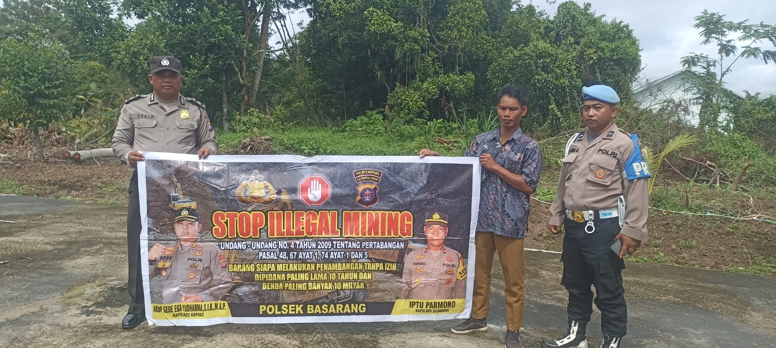 Polsek Basarang jajaran Polres Kapuas, Polda Kalteng, Personel Polsek Basarang rutin melakukan kegiatan sosialisasi pencegahan penambangan liar dan kerusakan lingkungan kepada masyarakat di wilayah Kecamatan Basarang Kabupaten Kapuas Provinsi Kalimantan Tengah, Selasa (21/4/2026)