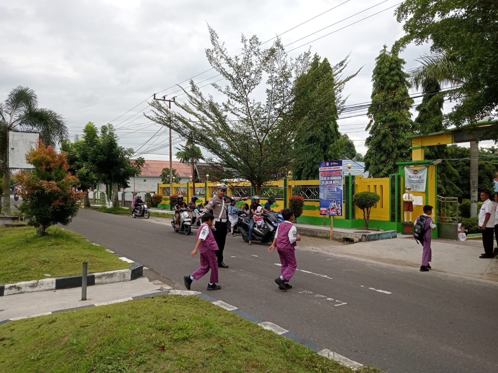 Satlantas Polres Sukamara Amankan Penyeberangan Pelajar di Pagi Hari