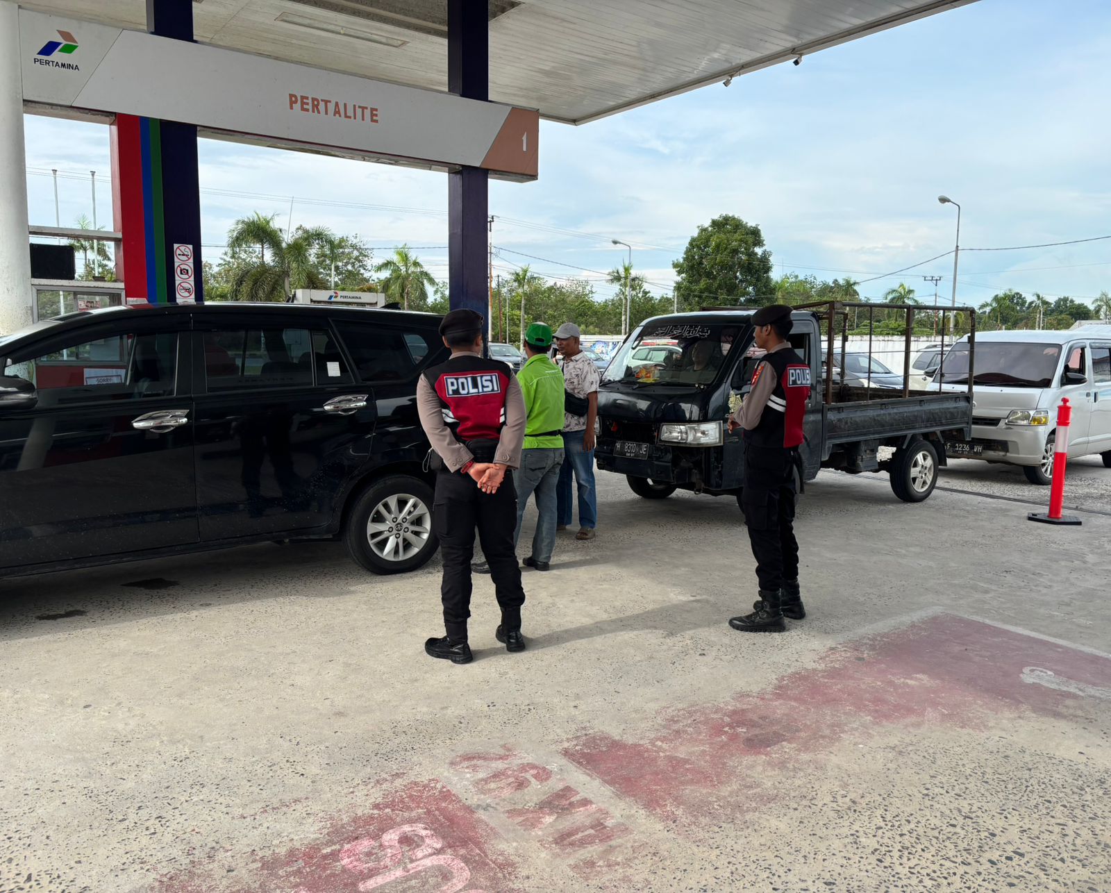 Dalam pelaksanaannya, personel melakukan pemantauan di sekitar lokasi, termasuk jalur antrean kendaraan, area pengisian bahan bakar, serta lingkungan sekitar guna memastikan situasi tetap aman dan kondusif.