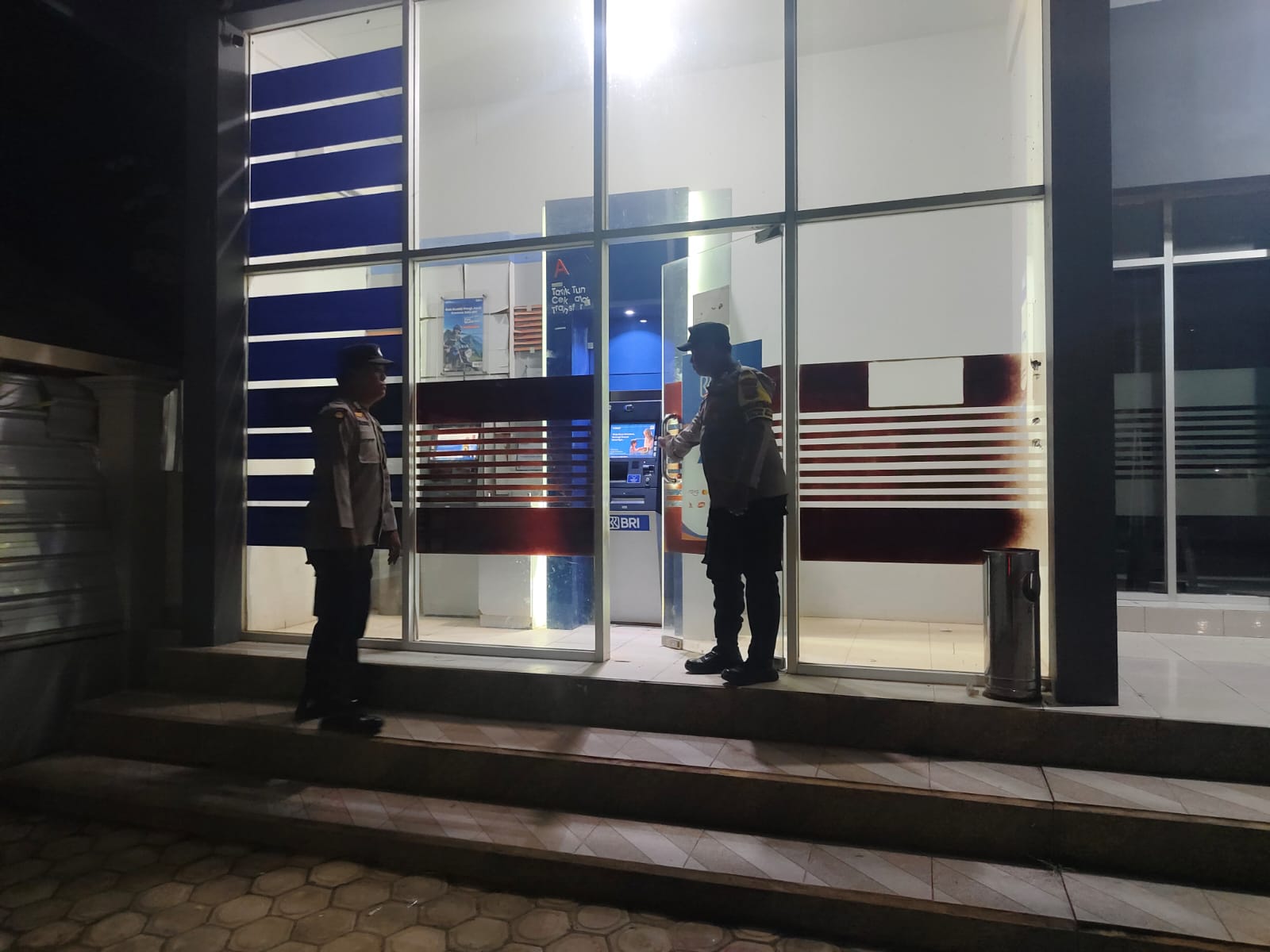 Personel Piket Polsek Balai Riam Laksanakan Patroli KRYD di Area ATM Bank BRI pada Malam Hari