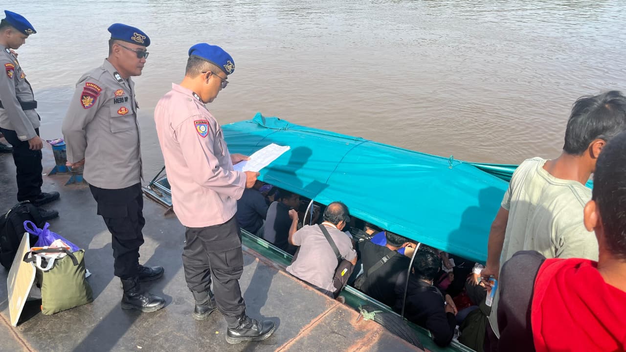 Polres Barito Selatan – Utamakan Keselamatan selama dalam perjalanan Unit Patroli Sat Polairud Polres Barito Selatan (Barsel) Polda Kalteng melakukan Patroli di Pelabuhan Air Pasar Lama Buntok, Minggu (26/4/2026) pagi