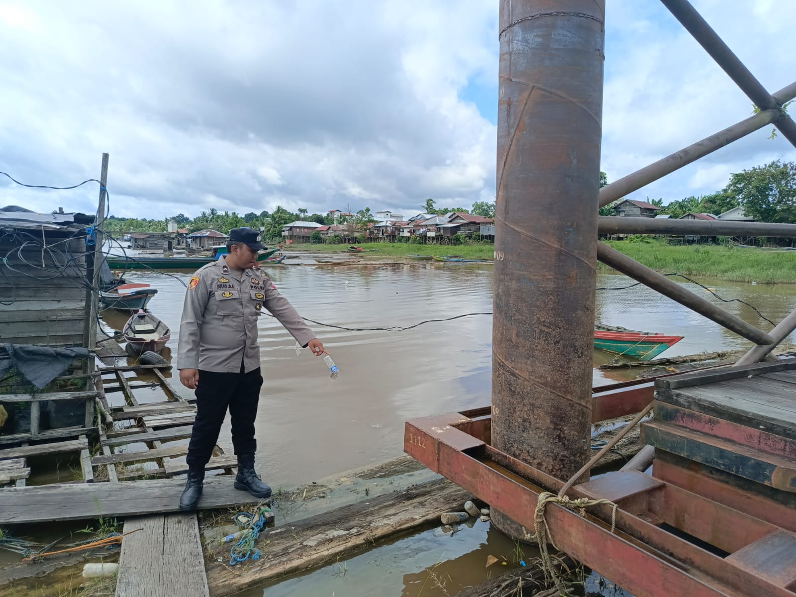 Polres Barsel β Mengantisipasi kenaikan air kiriman dari hulu Sungai Barito, personel Polsek Dusun Selatan (Dusel), Polres Barito Selatan (Barsel), Polda Kalteng, melaksanakan patroli mengecek debit air di bantaran Sungai Barito, Kota Buntok, Minggu (26/4/2026) Pagi.