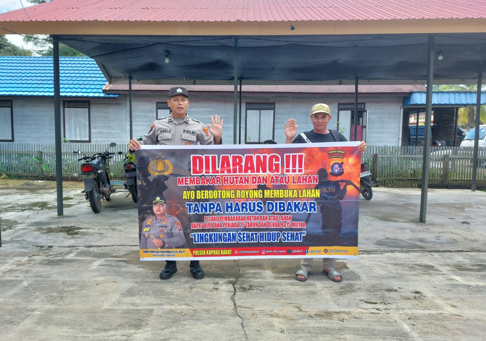 Kapolsek Kapuas Barat, Ipda Siswono Tri Soemantri, S.H., M.M., memimpin langsung koordinasi lapangan untuk memastikan pesan-pesan pencegahan Karhutla tersampaikan hingga ke pelosok desa. Personel kepolisian memberikan penjelasan mengenai sanksi hukum bagi pelaku pembakaran lahan dengan sengaja sesuai undang-undang yang berlaku.