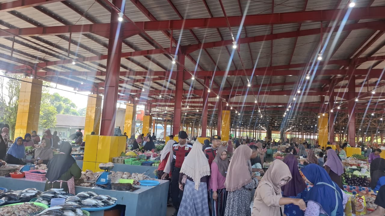 Petugas berkeliling area pasar meninjau setiap sudut keramaian guna memastikan tidak ada ancaman. Mereka membantu pedagang yang menata barang agar tidak mengganggu jalur orang melintas. Keamanan pasar adalah bagian dari pelayanan maksimal kepada warga.