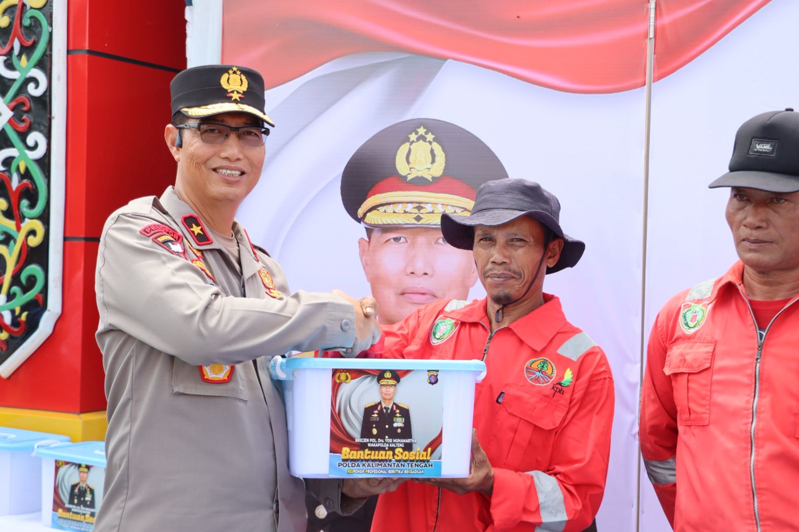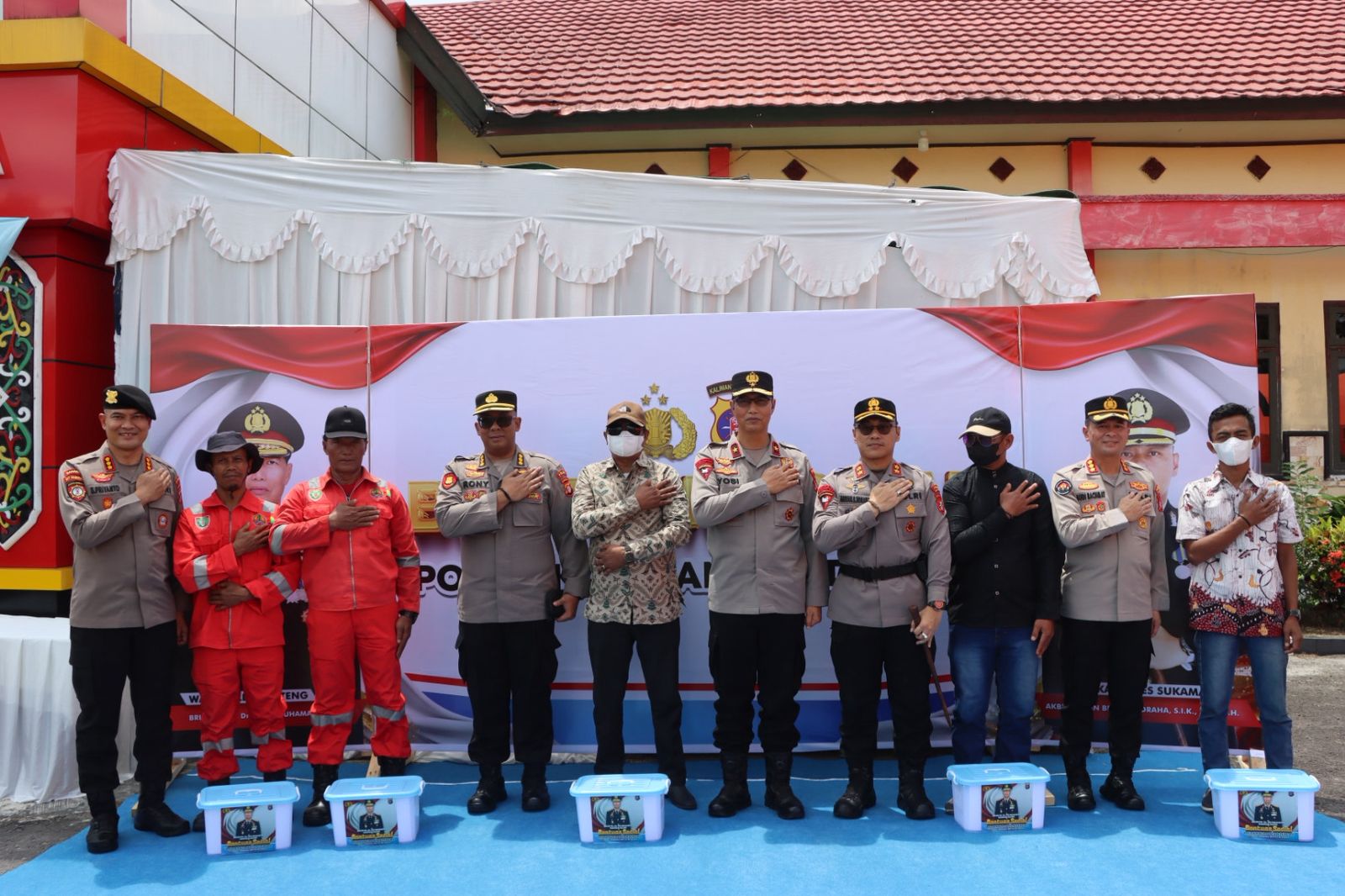 Selanjutnya, Wakapolda Kalteng bersama Kapolres Sukamara melaksanakan penyerahan simbolis Bantuan Sosial (Bansos) kepada Masyarakat Peduli Api serta mitra kepolisian di Kabupaten Sukamara. Kegiatan ini merupakan wujud kepedulian Polri sekaligus upaya memperkuat sinergi dalam pencegahan dan penanggulangan kebakaran hutan dan lahan di wilayah setempat.